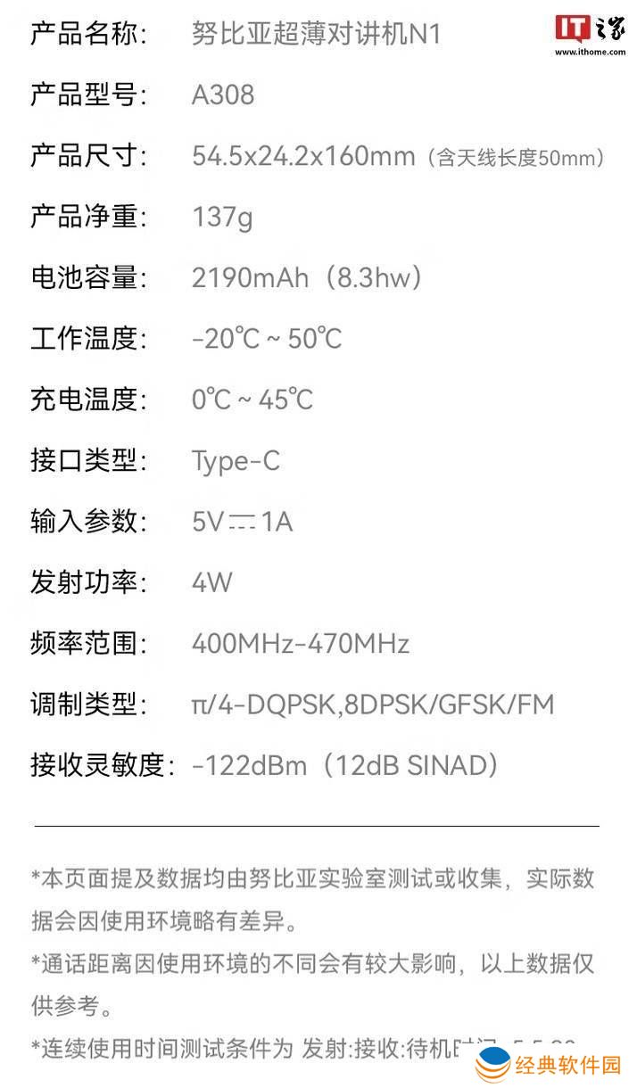 以下是N1对讲机的详细规格信息: