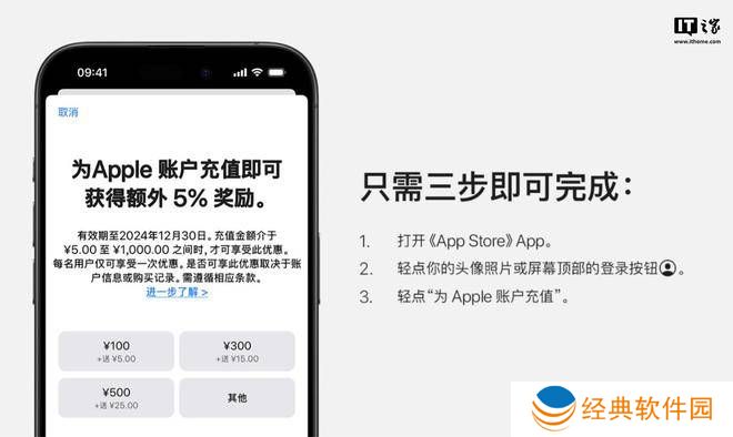 为了方便用户参与此次活动,苹果还提供了详细的充值步骤。用户只需打开苹果App Store应用,点击头像照片或屏幕顶部的登录按钮,然后选择“为Apple账户充值”选项,即可按照提示完成充值操作。