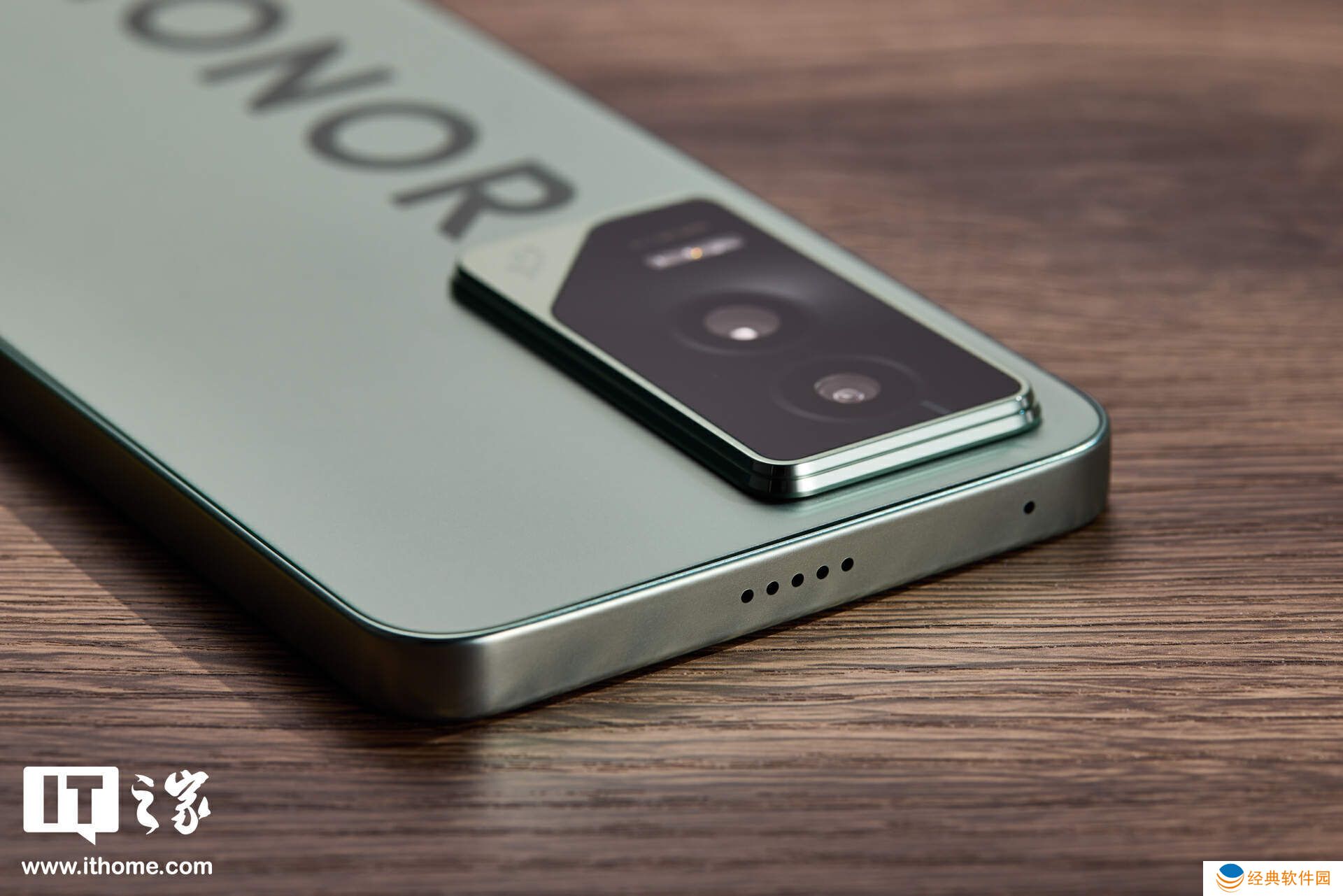在配色方面,荣耀GT推出了“冰晶白”、“幻影黑”以及经典的“极光绿”三种颜色选项。特别是“极光绿”版本,它延续了荣耀30系列上的HONOR“大LOGO”设计,彰显出独特的品牌魅力。以下是一张“极光绿”配色的实拍图,展现了其独特的外观: