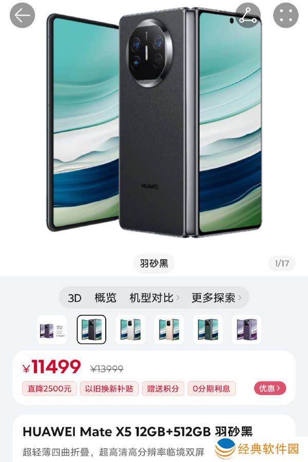 具体来看,Mate X5自2023年9月发布以来,凭借其出色的设计和配置,赢得了不少消费者的青睐。这款手机采用了横向内折设计,外屏为6.4英寸的OLED材质,分辨率高达2504×1080,并支持1至120Hz的LTPO自适应刷新率,为用户带来了流畅的视觉体验。而7.85英寸的内屏,分辨率更是达到了2496×2224,同样支持LTPO技术和高频PWM调光,色彩还原度极高,显示效果令人惊艳。