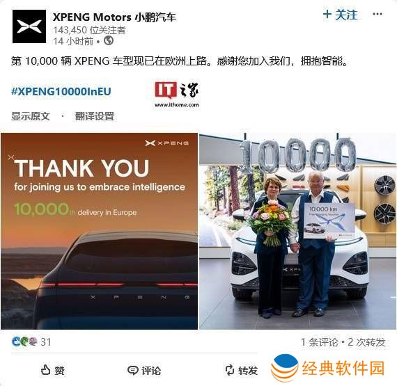 小鹏汽车近日在社交平台上宣布,其欧洲市场的电动汽车交付量已突破万辆大关,这一成就标志着小鹏汽车成为首家在欧洲达成此里程碑的中国电动汽车初创企业。
