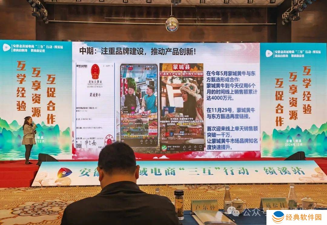 汪婉婷详细介绍了蒙城县作为全国养牛大县和安徽省肉牛养殖10强县的优势,分享了她在直播过程中如何克服种种困难,利用互联网平台提升产品知名度和市场竞争力的经验。她提到,蒙城县商务局和电商公共服务中心在推动电商直播发展方面采取了有力举措,取得了显著成效。此前,汪婉婷主导的电商直播案例还荣获了2024年农村直播电商案例全国第一的殊荣。