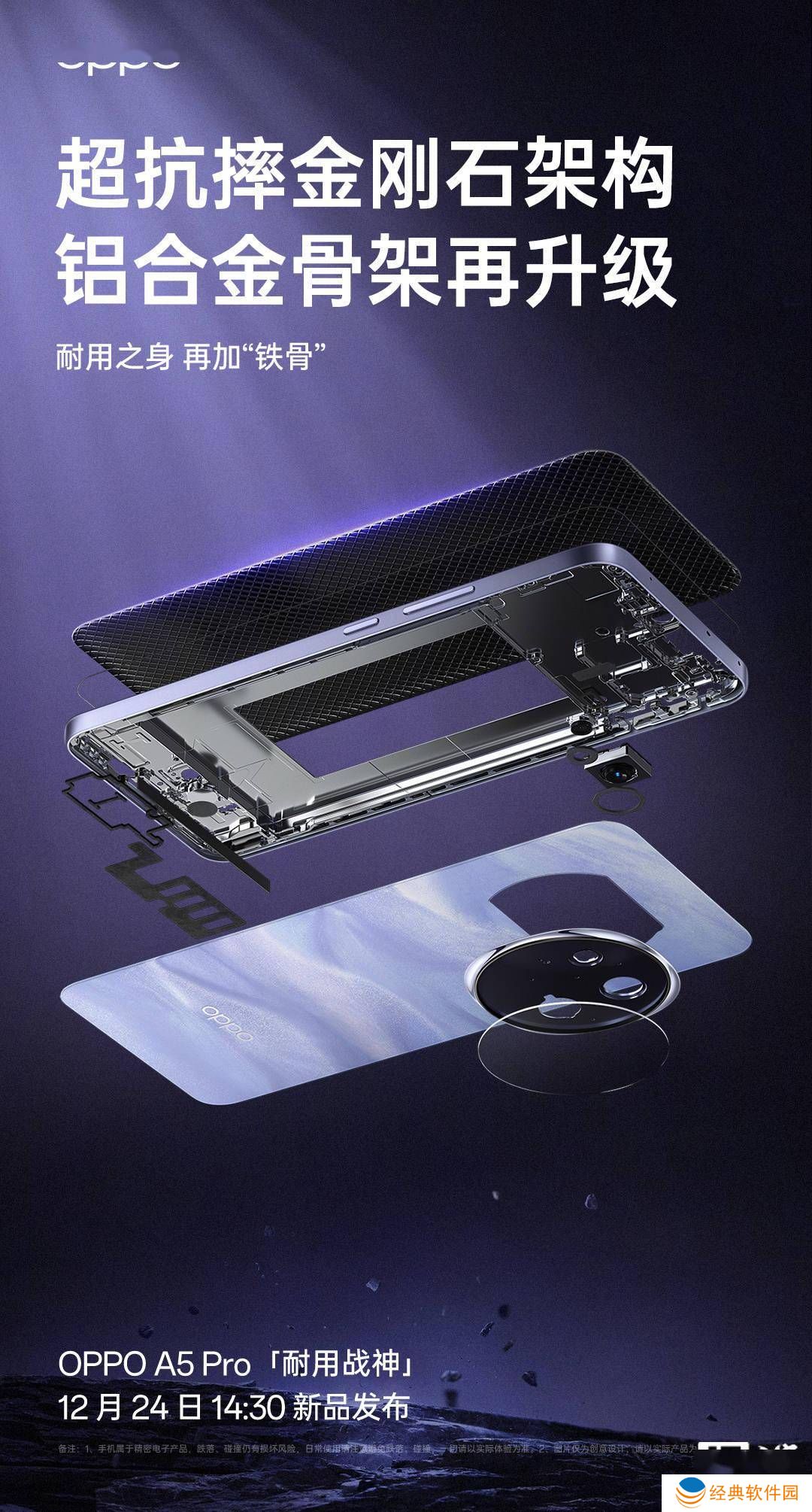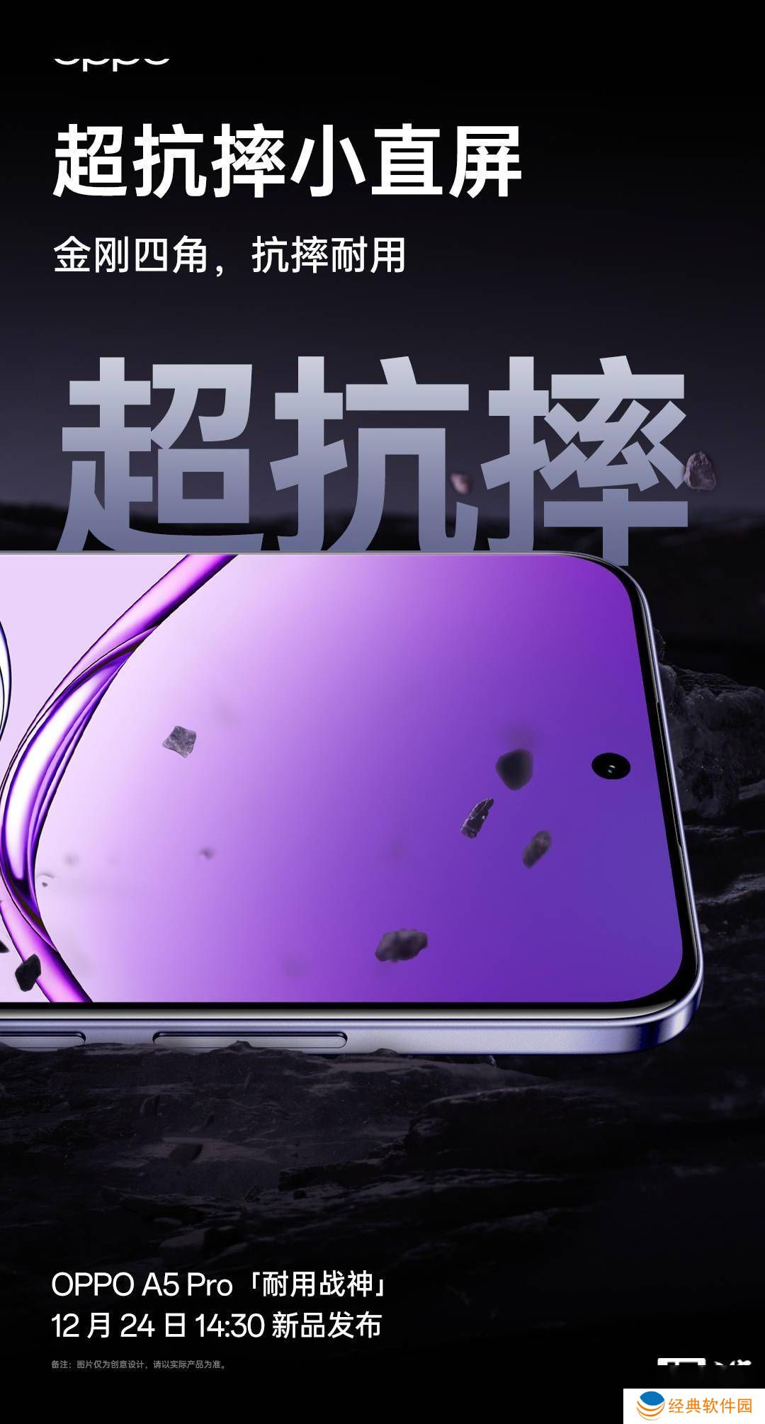 OPPO A5 Pro手机即将于12月24日下午两点半正式发布,官方近日密集预热,透露该机型在抗摔性能上实现了新突破。据称,其超抗摔金刚石架构再次升级,在四曲柔边直屏的形态下,达到了前所未有的抗摔水平。