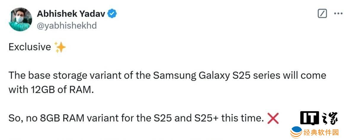 近期,关于三星即将推出的Galaxy S25系列手机的配置信息引起了广泛关注。据知名博主Abhishek Yadav透露,S25系列的基础款将直接配备12GB RAM,摒弃了以往常见的8GB RAM版本。这一消息无疑为期待高性能的用户带来了好消息。