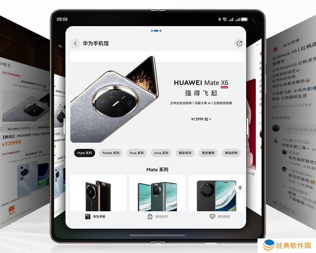 华为折叠屏手机,自问世以来便以其领先的技术和卓越的用户体验,成为行业内的佼佼者。从最初的大外折、大内折,到后来的小折乃至三折设计,华为始终走在折叠屏技术的最前沿。而此次的Mate X6,更是将折叠屏手机的技术水平推向了新的高度,为用户带来了前所未有的沉浸式体验。