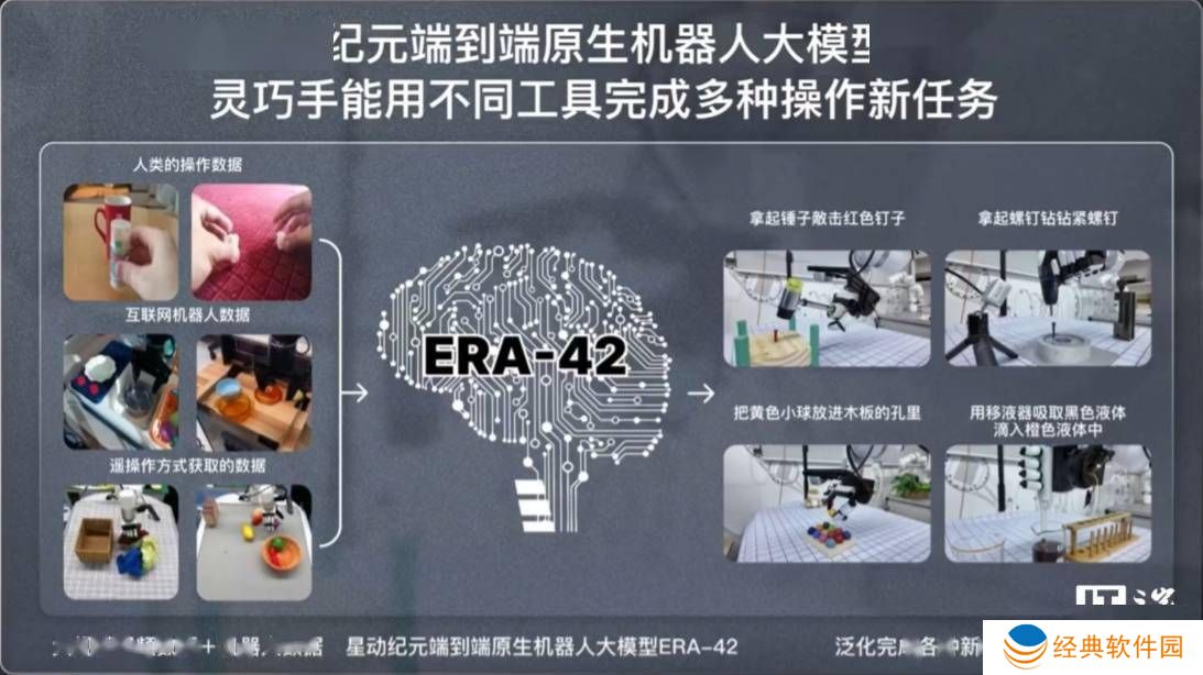 更令人惊叹的是,ERA-42模型无需任何预编程技能,仅凭其强大的泛化和自适应能力,在极短时间内便能学会新任务。具体而言,该模型能在不到两小时的时间内,通过收集少量数据,迅速掌握并执行新的操作任务。