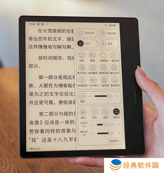 Clear7 电纸书还内置了汉王、当当、微信、京东读书四大在线书城,并支持用户下载更多第三方书城 App,极大地丰富了用户的阅读资源。在显示技术上,Clear7 电纸书更是采用了自研的 16 级灰阶算法,能够细致模拟出 256 级灰阶的显示效果,使得画面更为细腻自然。同时,30 级 DC 调光技术的加入,让用户可以根据自己的喜好选择冷暖双色温,并支持双光联调,进一步提升了阅读的舒适度。
