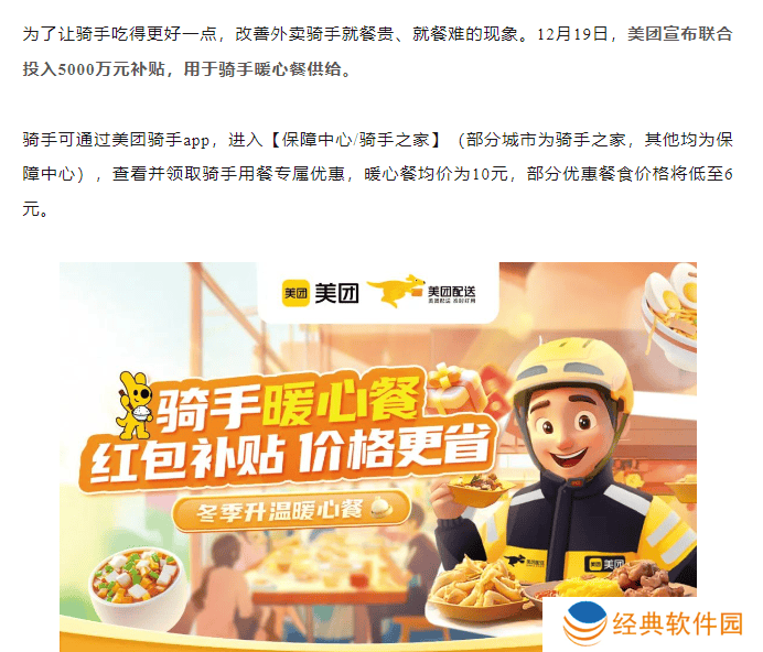 美团的这一举措,无疑是对骑手辛勤工作的肯定与回馈。在寒冷的冬季,骑手们依然坚守岗位,穿梭于城市的每一个角落,为千家万户送去温暖与便利。美团通过发放餐饮补贴,不仅减轻了骑手们的经济负担,更体现了企业对员工的人文关怀。