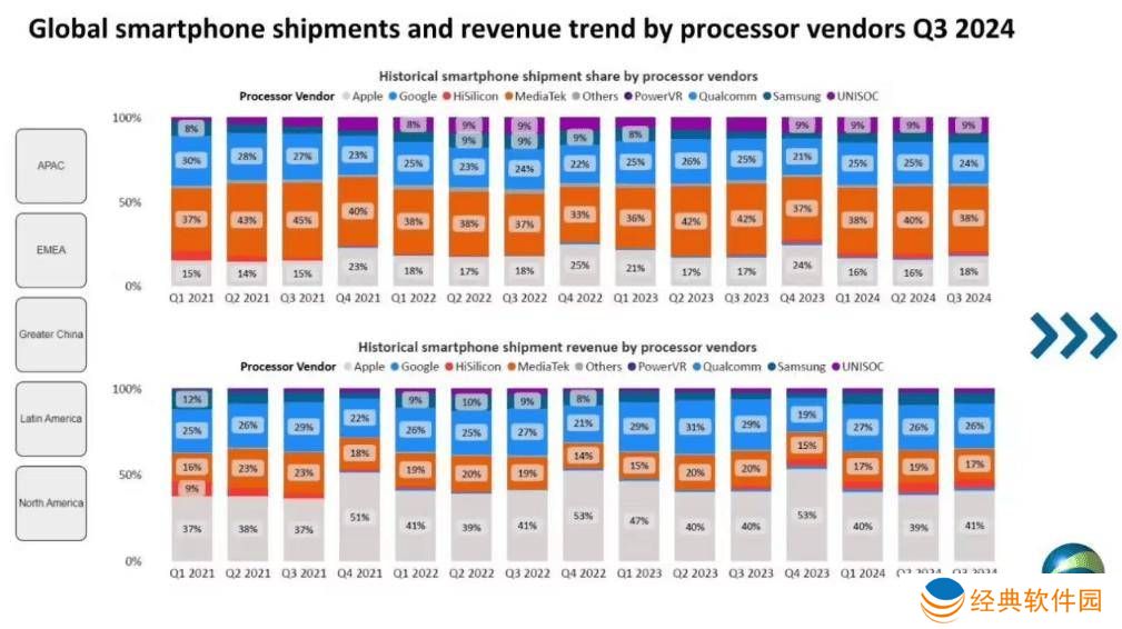 联发科在高端市场的布局和推进,无疑为其赢得了更多的市场份额和消费者的认可。根据市场研究机构Canalys发布的数据,联发科已经连续15个季度保持了全球智能手机芯片出货量的第一位置,市场份额达到38%。而天玑8400的发布,无疑将进一步巩固联发科在高端市场的地位。