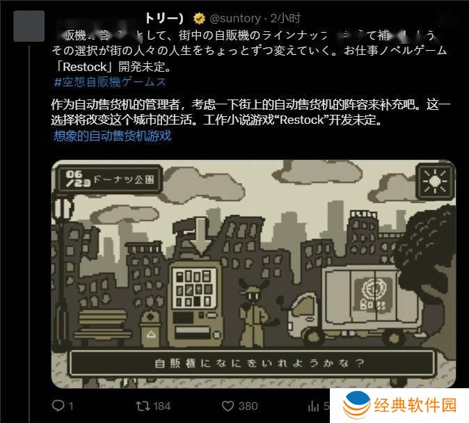 日本知名饮料制造商三得利近日宣布,其正在酝酿一款名为《Restock》的视觉小说游戏,但项目的具体开发进度尚未明确。