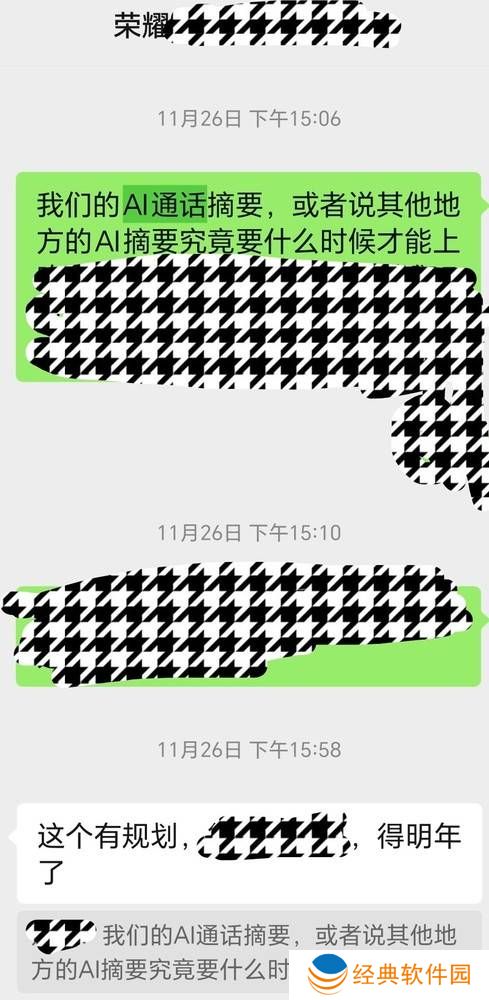 近期,荣耀手机的一项潜在功能更新引发了广泛关注。据网络流传的一张聊天记录截图显示,荣耀内部或相关知情人士透露,用户期盼已久的AI通话摘要功能或将于明年正式推出。这一消息迅速在荣耀手机用户群体中传播开来,大家纷纷期待这一便捷功能的到来。