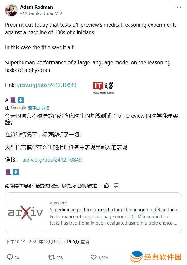 近期,一项由哈佛医学院携手斯坦福大学开展的医学研究揭示了人工智能在医疗诊断领域的潜力。研究显示,OpenAI的o1-preview模型在应对复杂医疗案例时,其诊断能力超越了人类医生。