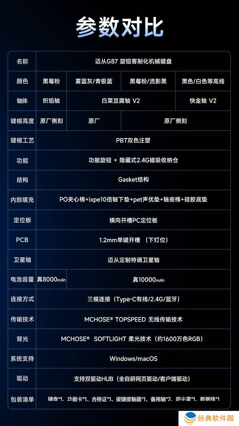 为了满足不同用户的需求,迈从还提供了详细的G87机械键盘参数对比图,让消费者可以更加直观地了解各个版本之间的差异。这一举措不仅提升了消费者的购买体验,也进一步体现了迈从对市场的深入洞察。
