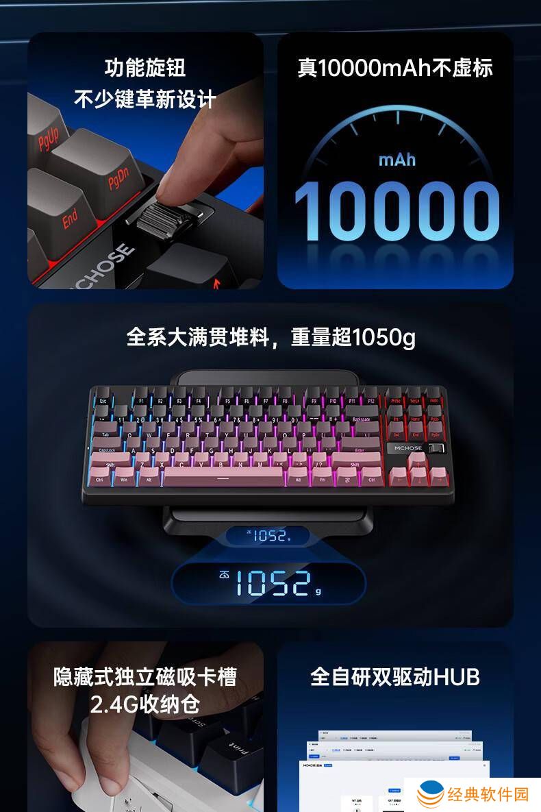 在核心硬件方面,迈从G87机械键盘快金轴V2版本采用了TTC旗下的首款发烧级HiFi轴体,为用户带来更加精准、流畅的打字体验。与此同时,该键盘还拥有10000mAh的大容量电池,确保了长时间的使用续航。