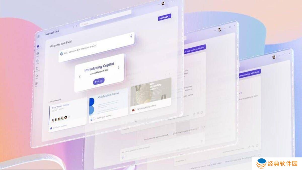 在界面设计方面,Microsoft 365 Copilot同样进行了全面优化。新的界面设计去除了原有的标题栏和“返回”按钮,将所有功能按钮整合至左侧边栏,使整体布局更加简洁明了。同时,Copilot功能被置于界面顶部,方便用户快速访问和使用。