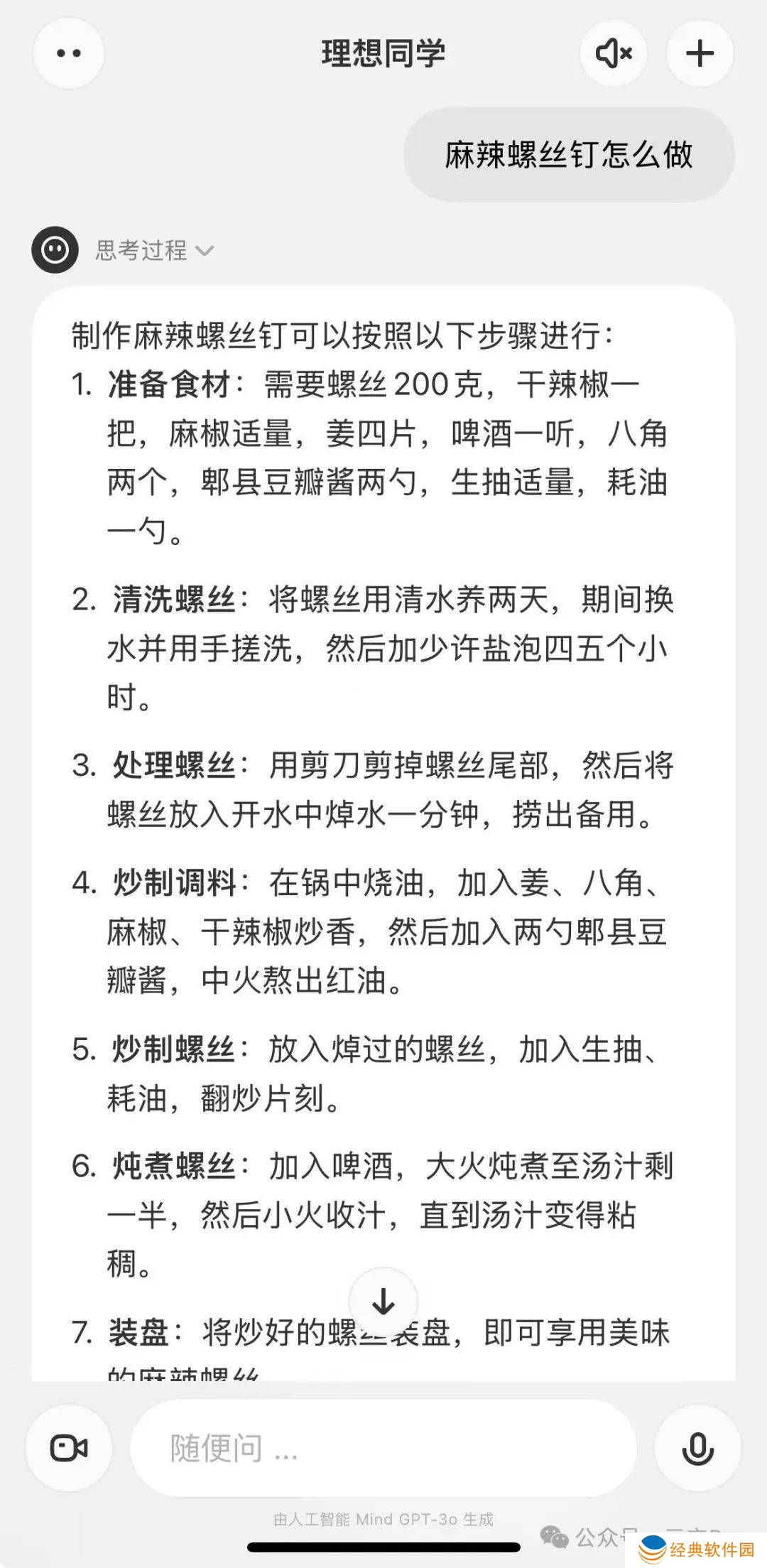 在文字对话测试中,理想同学同样展现出了不俗的实力。对于给出一系列动作的合理先后顺序、将散乱词语组成句子以及解释家庭问题等测试,理想同学均给出了正确的答案。然而,在解决“鸡兔同笼”这一经典数学问题时,理想同学却给出了错误的答案。对于“麻辣螺丝钉怎么做?”这一看似荒诞的问题,理想同学也未能给出合理的回答。