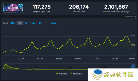 近期,备受玩家瞩目的游戏《幻兽帕鲁》迎来了一波重大更新,名为“天坠之地”,紧随其后的是一系列圣诞主题更新。这些更新不仅为游戏注入了新的活力,更使得其日活跃用户数量在短时间内实现了飞跃,成功突破了20万大关,并重新跻身Steam热门游戏排行榜前十。