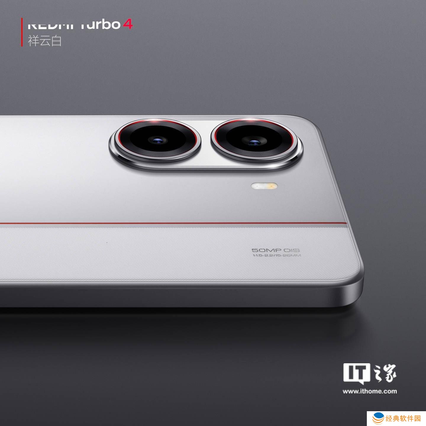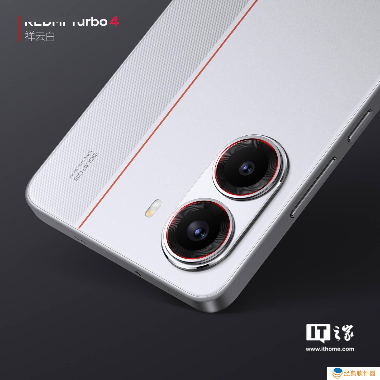 从官方公布的图片来看,祥云白版的REDMI Turbo 4在细节处理上也十分到位。无论是屏幕的显示效果,还是按键的布局,都透露出一种精致感。手机的摄像头模组和指纹识别区域的设计也十分简洁,没有过多的冗余元素,使得整体看起来更加清爽。