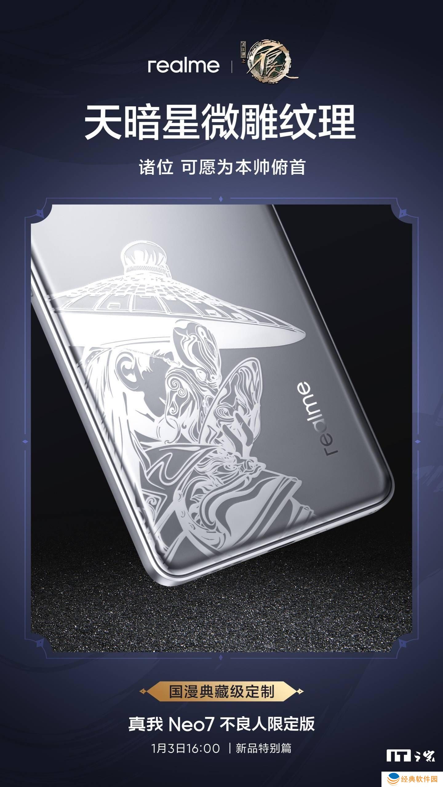 “剑魂银”配色通过精细的流光烫银工艺,完美再现了龙泉剑出鞘时的冷冽光芒,给人一种高贵而不失锋锐的视觉感受。手机背部则运用了微雕笔触工艺,将《不良人》系列中的经典角色“不良帅天暗星”的印记巧妙地融入其中,细节之处尽显匠心。