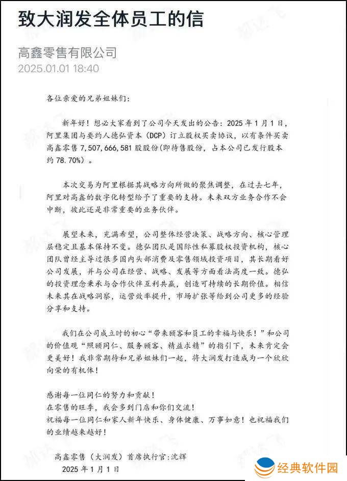 在信中,沈辉还透露了公司未来的一些重要信息。他指出,高鑫零售的整体经营决策、战略方向以及核心管理层都将保持稳定,基本不会发生变化。德弘资本团队对公司的发展前景持乐观态度,并在经营、战略、发展等方面与公司有着高度一致的认识。沈辉相信,德弘资本将在战略洞察、运营效率提升以及市场扩张等方面为公司提供更多的经验分享和支持。