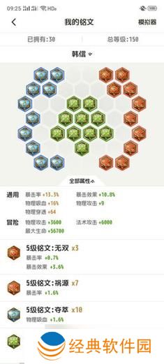 铭文搭配:韩信的铭文可以选择增加攻击速度、物理穿透和暴击率的铭文组合,如红月、鹰眼和夺萃等。这些铭文可以提升韩信的前期伤害和清野速度。