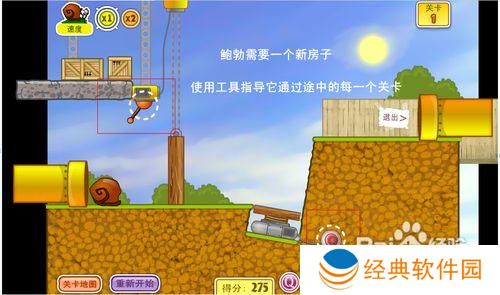 游戏目标:使用工具通过途中的每一个关卡,帮助蜗牛鲍勃找到新家。