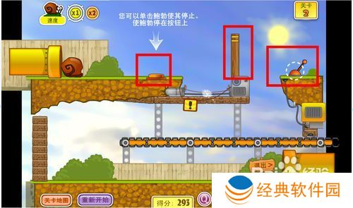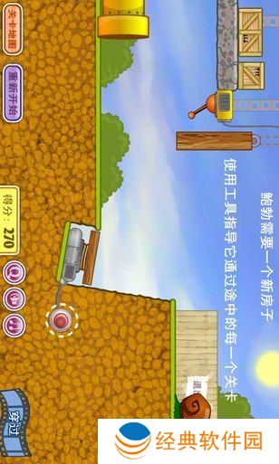 操作方法:鼠标点击操作,根据游戏中虚线圈圈和箭头的指示来控制工地中的设施,也可点击蜗牛使他暂停或继续行走。