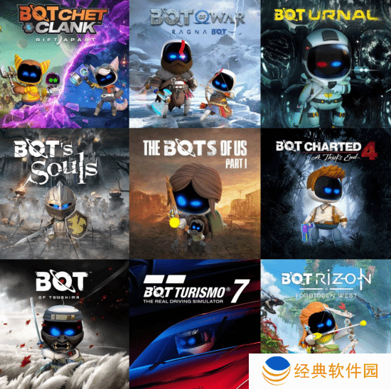 在《宇宙机器人》发布的九宫格图片中,细心的玩家们发现,其中不少角色都来自于PlayStation的经典游戏作品,如《灵魂能力》、《使命召唤9》以及《最后的生还者》等。这些角色的出现,不仅展示了《宇宙机器人》的丰富内涵,也再次唤起了玩家们对于PlayStation经典游戏的回忆。