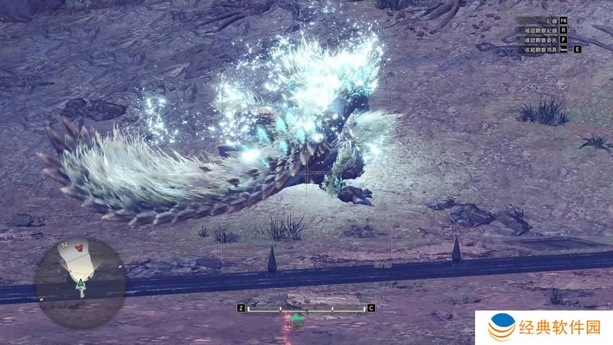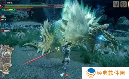 找到雷狼龙:在狩猎场中仔细搜索,找到雷狼龙的踪迹并准备进行战斗。