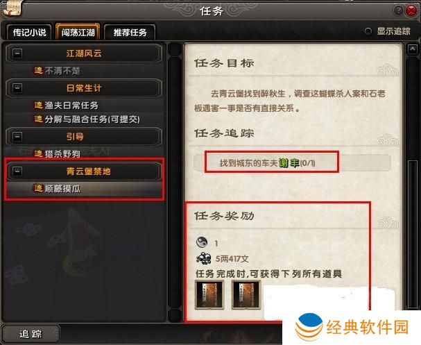 在游戏界面的右上方地图下方,有一个“江湖宝鉴”的图标。点击该图标后,会开启一个任务栏。