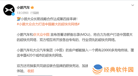 国内电动汽车行业迎来新动作,小鹏汽车与大众汽车集团(中国)宣布达成了一项重要合作。此次合作的核心在于超快充网络领域的资源共享,双方已经签署了谅解备忘录。