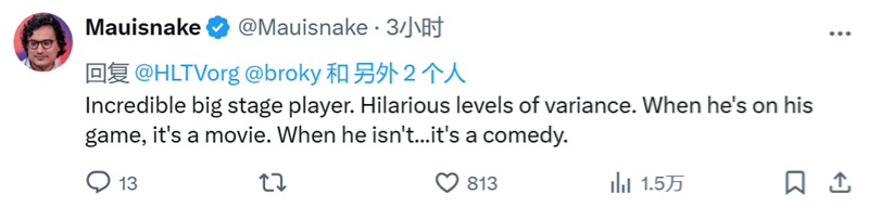 Mauisnake:他是个在大赛舞台上表现惊人的选手,但状态起伏极大。当他状态在线时,比赛就像精彩大片;而当他状态不佳时……那就像一出喜剧。