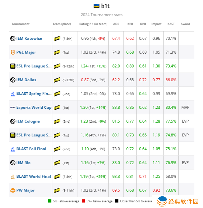 Natus Vincere在 2022年仅赢得了一项赛事——BLAST春季总决赛,但在Boombl4离队前,他们依然表现出色,分别在PGL 安特卫普 Major和IEM科隆站中获得亚军。而b1t在这几项赛事中均获得了 EVP。