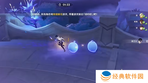 1、玩家需要和三个队友一起将游灵赶到目标点。