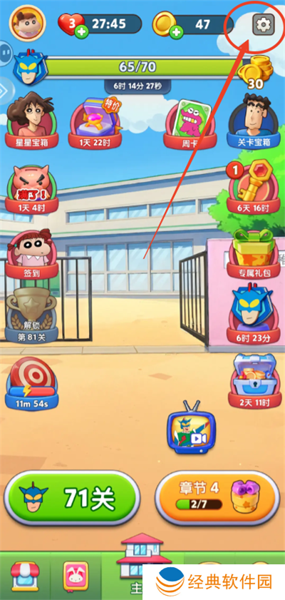 2.闯关至【11关】,解锁主页所有功能之后,点击主页【设置】按钮,下图所示;