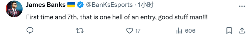Banks:第一次进Top20就位列第七,这成绩相当了不起。干的漂亮兄弟。
