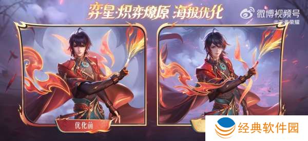 弈星的史诗皮肤炽弈燎原优化了海报,主要体现在两个地方,一个是站姿,原来的站姿是面朝大家,优化后变成了侧着朝大家,这一站姿的改变,让弈星的气质发生了改变,这种气质的变化娜娜也说不出来变在哪里,反正就是更帅气了。