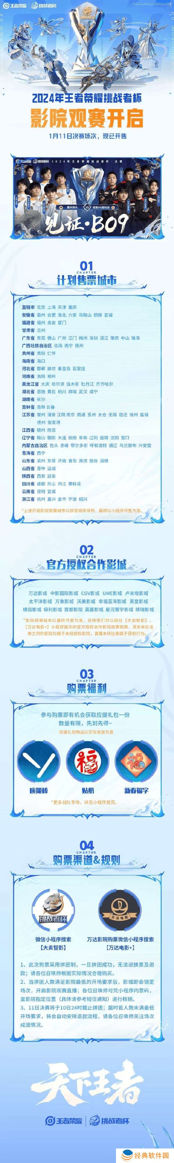 新年伊始,竞粉欢聚!2024年王者荣耀挑战者杯 进入到最激烈的决赛阶段,是成都AG超玩会 创造一个新的三连冠王朝,还是重庆狼队王者荣耀分部 加冕史无前例的十一冠王?K妹希望能把这期待与激情带到各位召唤师的家门口,本次将继续推出KPL沉浸式影院观赛活动,即使无法身处比赛现场,也能感受到比赛主场的氛围~王者荣耀职业电竞史上首次BO9大战,让我们一同见证,一起欢呼,共享燃爆的精彩瞬间!