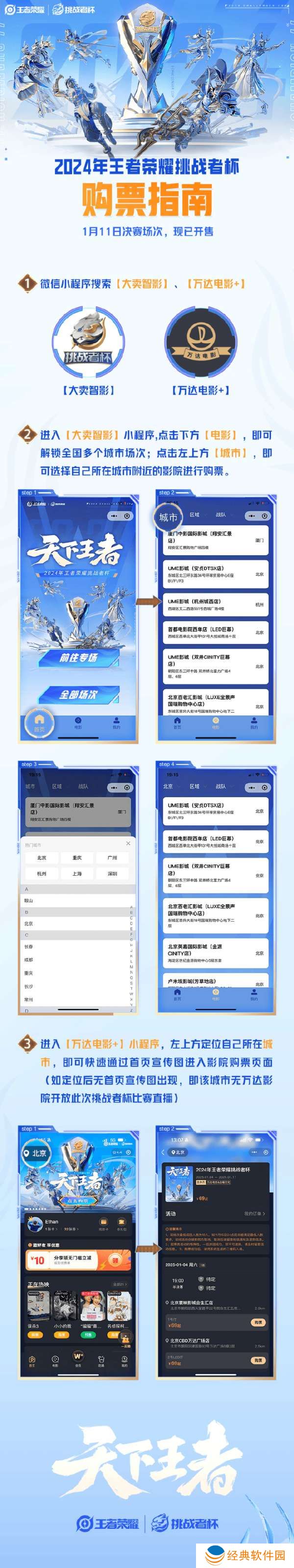 计划在全国超100座城市,开设超200家2024年王者荣耀挑战者杯决赛影院观赛直播,购票观众可以领取一份应援礼包,数量有限,先到先得;
