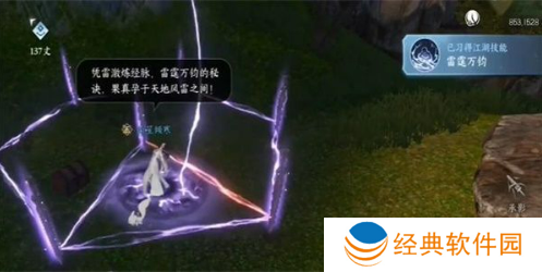 2、我们到达目的地之后,进入到限时挑战玄雷阵当中,接着我们就会被雷电到获取到技能雷霆万钧。