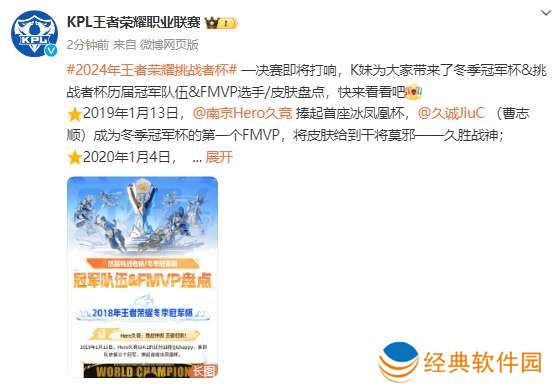 2024年王者荣耀挑战者杯 —决赛即将打响,K妹为大家带来了冬季冠军杯&挑战者杯历届冠**伍&FMVP选手/皮肤盘点,快来看看吧