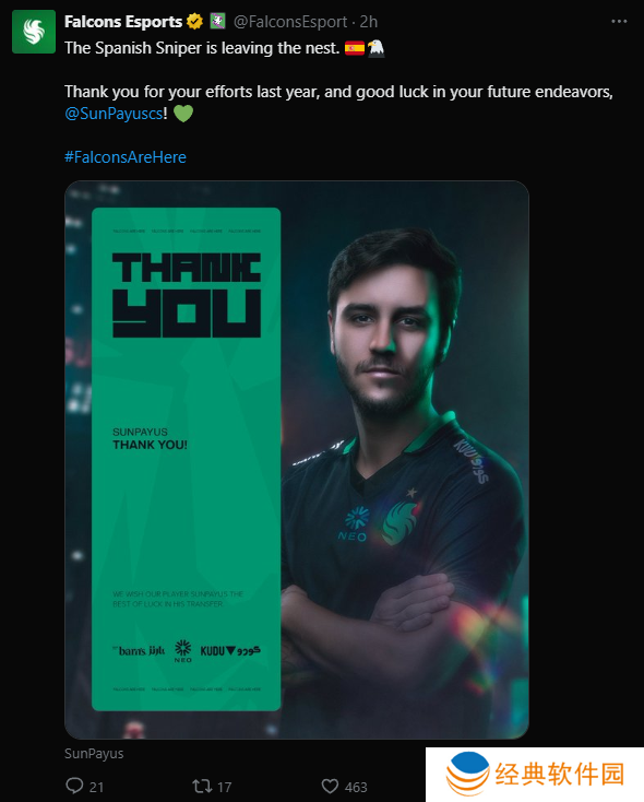 Falcons于官媒宣布SunPayus即将离队。消息传出后,有报道称这位西班牙AWPer即将加入