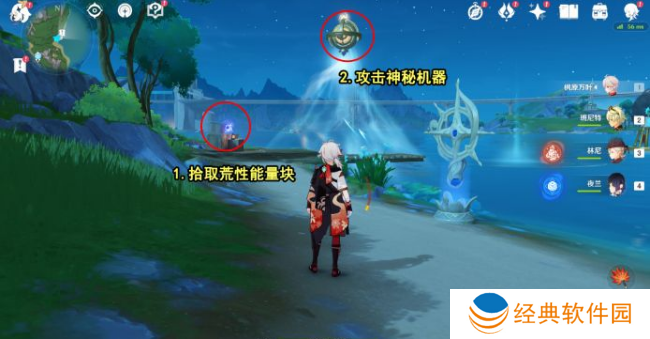 2、到达之后拾取荒性能量块攻击神秘机器并将出现的敌人消灭掉;