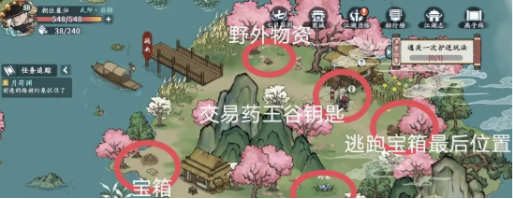 8、宝箱12级逃跑宝箱最后位置,和陆七公交易获得药王谷令牌钥匙