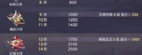 1、曙光英雄段位等级分为青铜,白银,黄金,铂金,钻石,大师,王者七个等级。