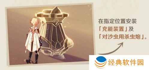 在指定位置安装「充能装置」及「对沙虫用杀虫炮」。