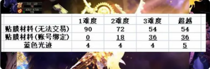 难度3:54个无法交易贴膜材料,36个账号绑定贴膜材料,4个蓝色光迹