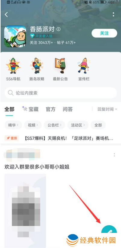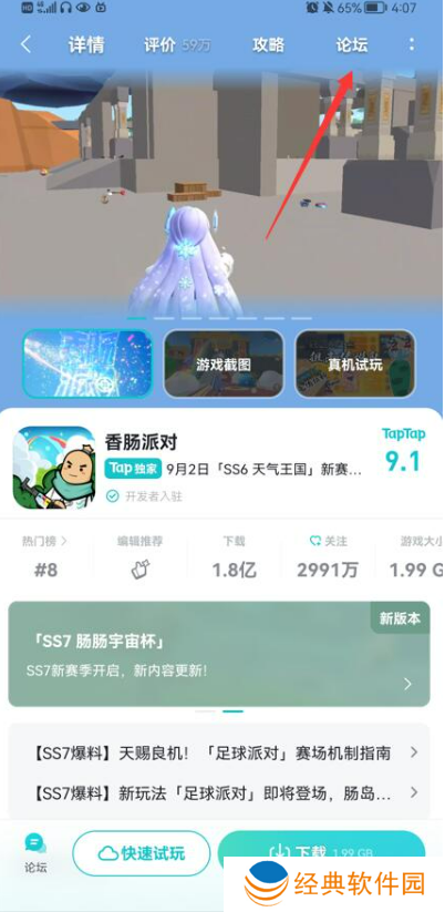 2、点击香肠派对这个游戏,点击右上角的论坛。
