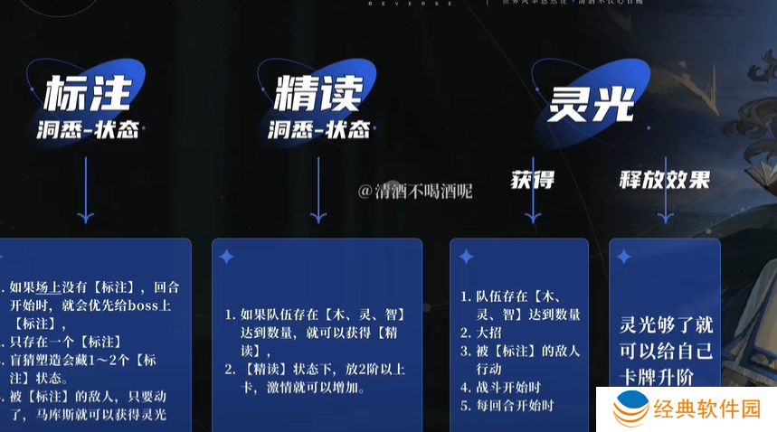 2、回合开始时会优先给boss上一个标注,这里可以存在多个,而且在塑造里面多方,这样有一个大的提升,毕竟被标注的敌人只要动了马库斯就可以获得灵光。