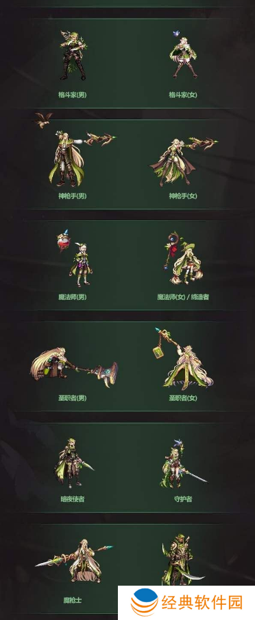 2、各个职业持有的武器也根据其特征变化,将绿色和咖色进行了完美的融入;